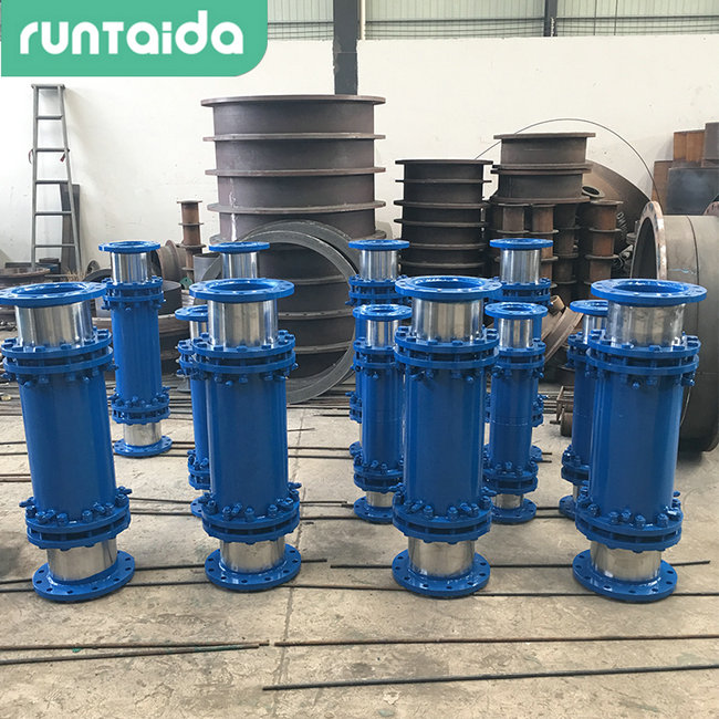 套筒式補償器分單向型和雙向型補償結構,雙向型特點是不論介質從補償器何端注入,其補償器兩端的滑動套筒總是自由的滑動,達到雙向補償作用,增大補償量。能直埋于地下,安裝時可不設置維修井,工程造價低。套筒補償器由外筒和內筒組成,外筒和內筒的法蘭片上裝有限位桿,在外筒的內壁上設有限位塊,外筒和內筒之間由V型橡膠圈來密封,解決了現有伸縮器填料摩擦力大、易泄露、難加工、易拖出的缺點。