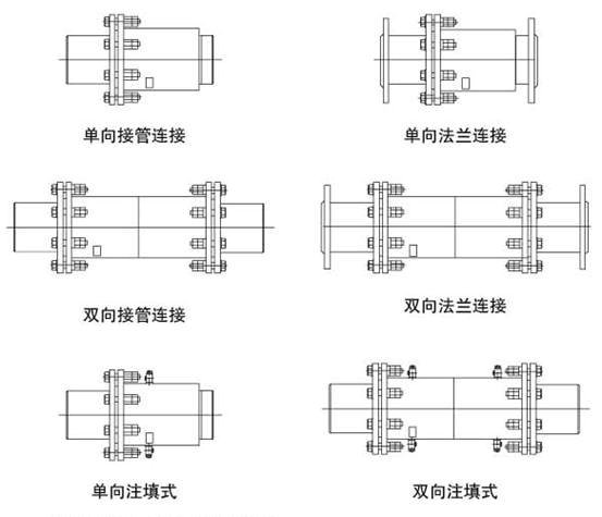 大家都知道套筒補償器有,單法蘭連接和雙法蘭連接,單向補償型和雙向補償型,下邊為大家帶來了產品的結構圖。
